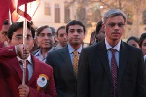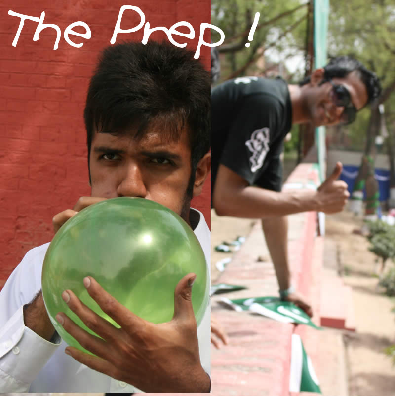 arrangements were being made. Some KAPS girls actually hammered in nails onto the trees to fix the ‘WELCOME TO KEMU’ banners. Whereas the KAPS boys were given the job of blowing the green and white ballons (which sadly deflated before the evening could even kick off). At around 6 pm, the flag party gathered to welcome the Cheif Minister of Punjab, Mian Shahbaz Sharif. However they were much disappointed to see that his son Hamza Shahbaz had come instead.